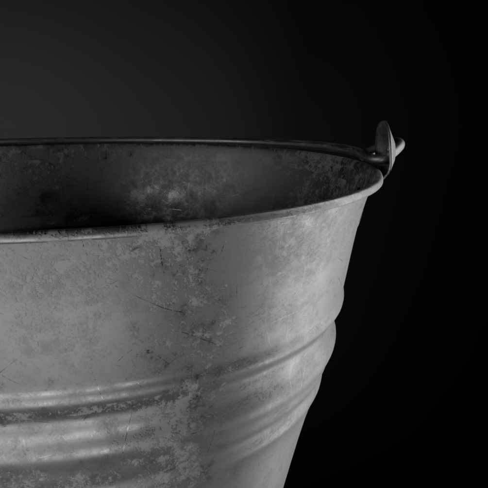 Galvanized iron bucket made in Blender3D. Ensure you have the Node Wrangler on to enable the textures